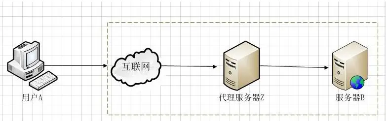 如下图,我们可以看出服务器 B 并不知道访问自己的实际是用户 A,因为代理服务器 Z 代替用户 A 去直接与服务器 B 进行交互。如果代理服务器 Z 被用户 A 完全控制(或不完全控制),会惯以「肉鸡」术语称呼。