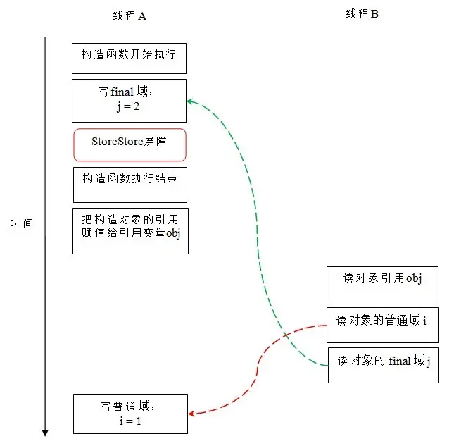 - 初次读一个包含final域的对象的引用和随后初次写这个final域,不能重拍序。