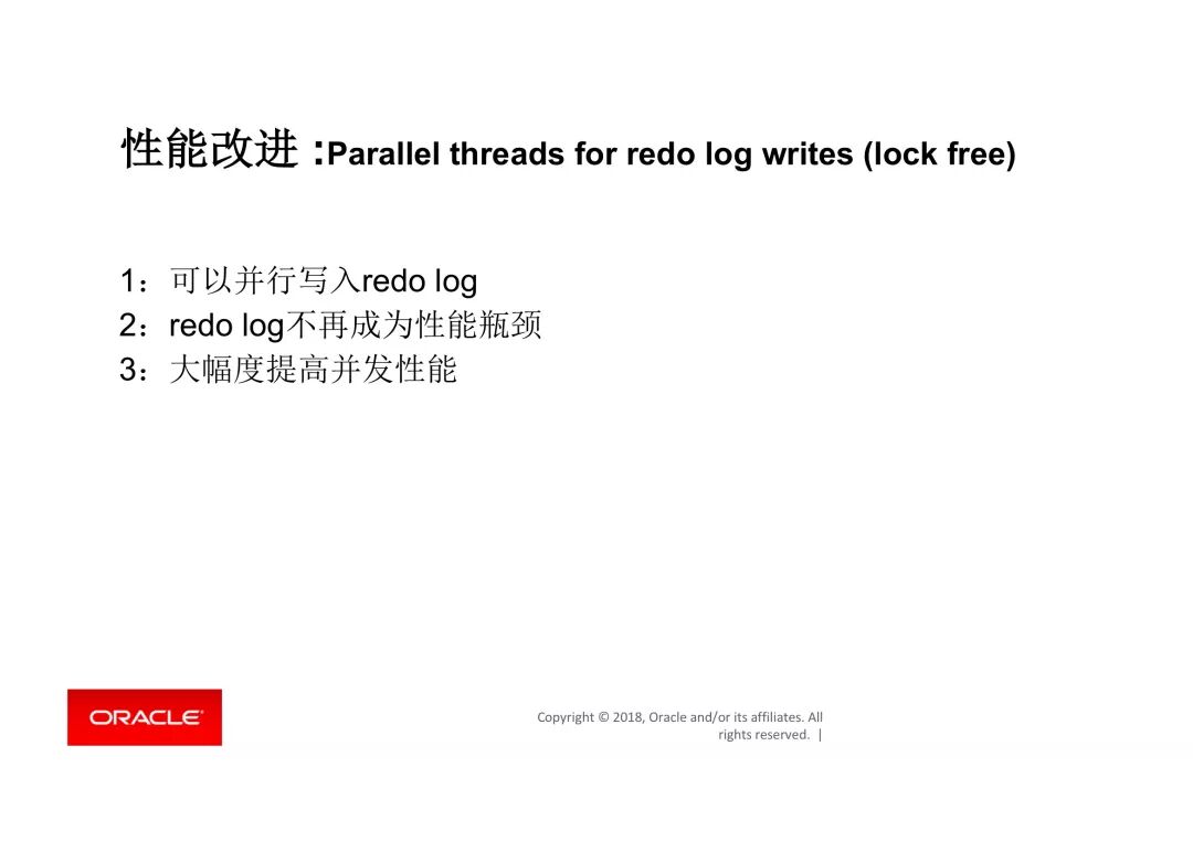 第一个最重大性能方面改进,redo log的并行写。原来写redo log是InnoDB的瓶颈,为什么呢?因为大家在做DML都要写redo log。
