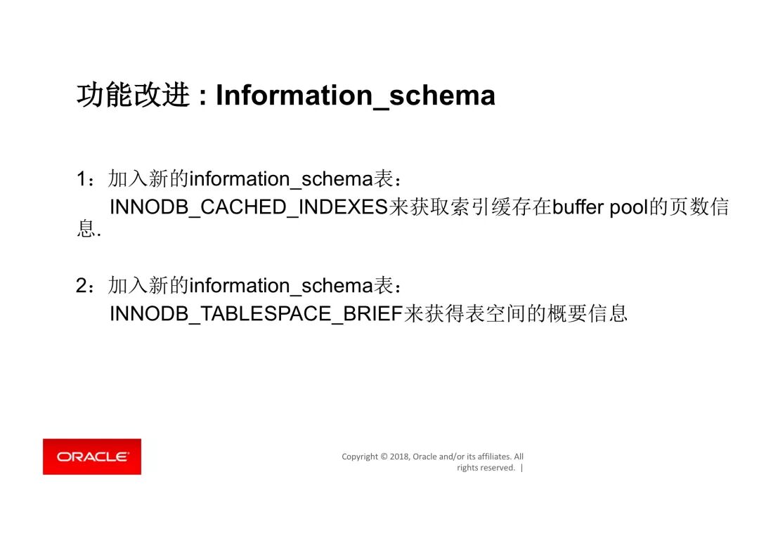 还有information schema的改变,比如加入新的信息来访问当前的,知道当前schema状态,这个不讲了。