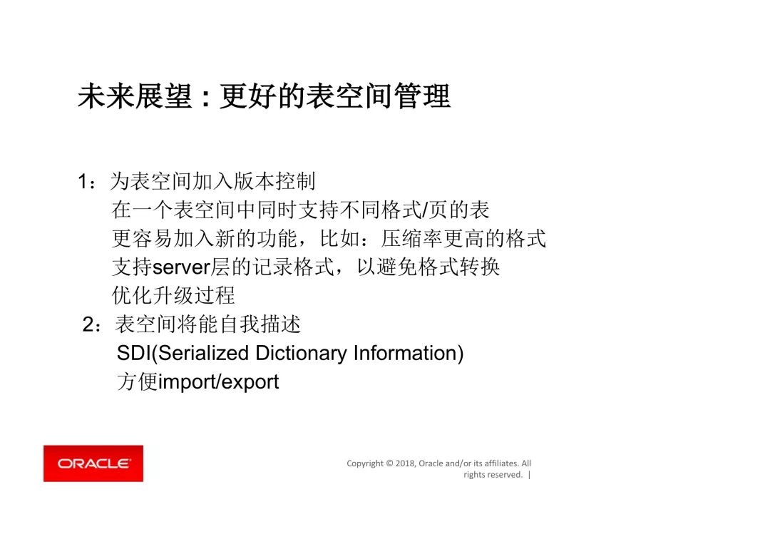 比如为表空间加入版本控制也是,不同格式的表,不同格式的页,我可以放在同一个表空间里头,这样将来可能会提供的功能。