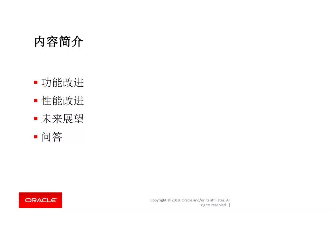 我今天演讲主要分这几个部分,第一个是功能方面的改进,讲的主要是MySQL8.0 里面 InnoDB,我只讲InnoDB,因为我是InnoDB组的,在MySQL8.0里面 InnoDB提供了哪些功能。