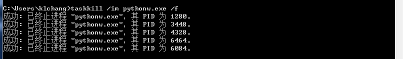 当使用python IDLE运行多线程python程序(如multiprocessing模块)时,会自动生成多个pythonw.exe进程,这时,可能会出现使用任务管理器无法杀死pythonw.exe进程的情况。