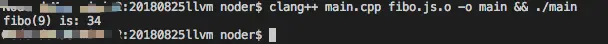 clang++ main.cpp fibo.js.o -o main && ./main