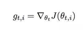 表示当前参数的梯度值,Adagrad 计算第 t 步之前累加的梯度平方和,以此作为学习率的分母。