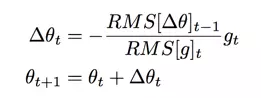 上文指出 Adagrad 随着时间增加导致学习率不断变小导致过早收敛,Adadelta 采用梯度平方的指数移动平均数来调节学习率的变化: