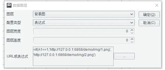 2、点击单元格F8,右击— 菜单【数据图层】: 配置类型选择:URL路径。