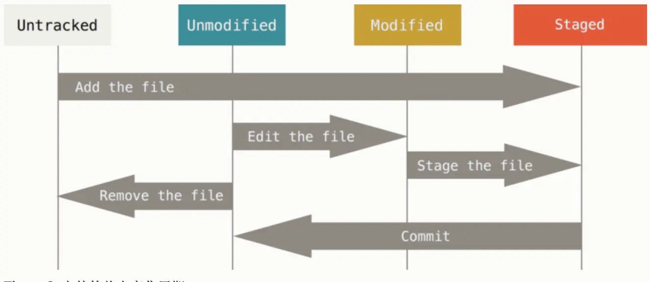 - 未跟踪、未修改、已修改、已暂存