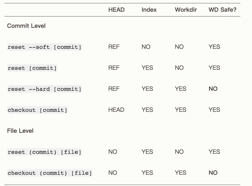 文件内容不变,如果工作区又做了修改将会丢弃暂存区的修改 - 取消文件在工作区的修改: