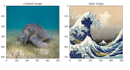 例如,我们选取一张乌龟的图像和 Katsushika Hokusai 的 《神奈川冲浪里》: