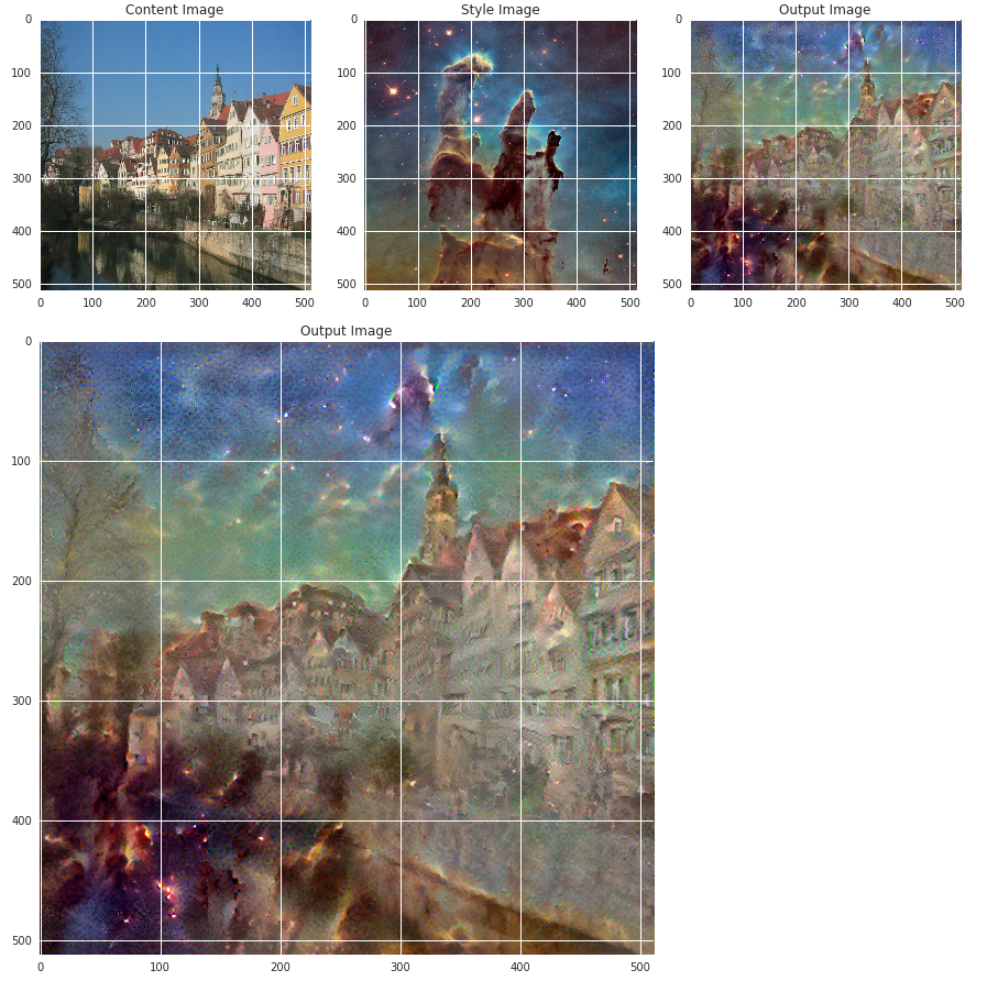 我们以常规方式执行反向传播算法,以便将内容损失降至最低。这样,我们可以更改初始图像,直至其在某个层(在 content_layer 中定义)中生成与原始内容图像相似的响应。