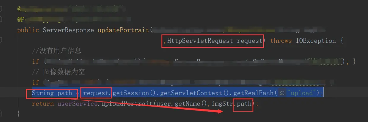 其实在HttpServletRequest中对我有用的信息是获取到容器的一个路径,所以将其提取,并修改传参。