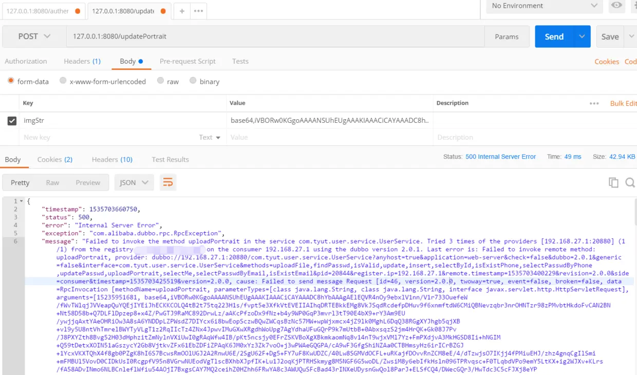 这种错误在同一dubbo端口下个多个相同服务中是很难发现错误具体信息的,报错虽然也是fail invoke method但是没有详细信息(你靠猜是猜不出来哪里出问题的),所以最好暂时关闭其它服务,或者申请不同的dubbo端口测试,让错误更准确的暴露出来。