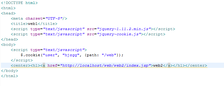 利用nginx的方向代理来解决cookie跨域问题,其实是通过“欺骗”浏览器来实现的,通过nginx,我们可以将不同工程的cookie放到nginx域下,通过nginx反向代理就可以取到不同工程写入的cookie。其实上述场景中 $.cookie("user", "hjzgg", {path: "/web"}); 中的path可以写成 “/”, 这样nginx的配置就更为简单了,如下。 location /web1 {
