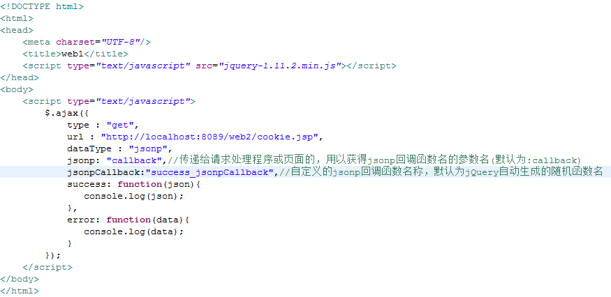 至此,通过jsonp方式的请求完成cookie跨域携带,也就是web1工程成功拿到了web2工程目录下的cookie。可以发现,jsonp会通过回调函数来处理服务器端返回的数据,因为返回的可以执行的js代码(也就是重写cookie的path和域),然后自动执行返回的js代码,从而达到目的。