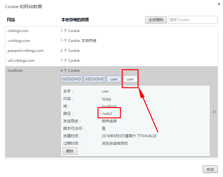 让这个设置的cookie 能被其他目录或者父级的目录访问的方法: