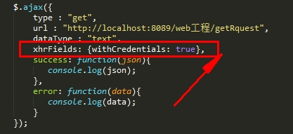 (1). 使用jsonp格式发送 (2). ajax请求中加上字段 xhrFields: {withCredentials: true},这样可以携带上cookie