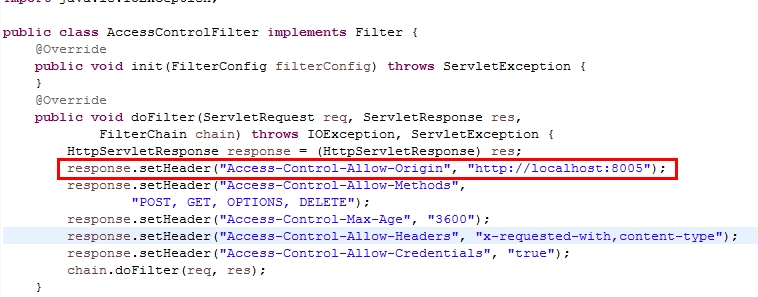 这样后台配置就出现了限制,需要配置一个解决跨域访问的过滤器,而且header字段Access-Control-Allow-Origin的值不能为"*", 必须是一个确定的域。