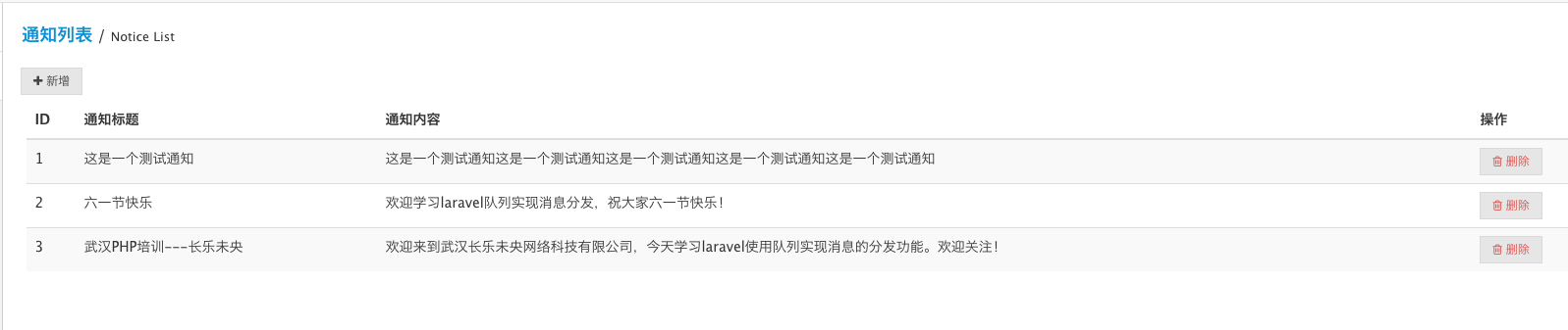 4、后台实现新增通知和通知列表即可。样式参考如下,代码省略...