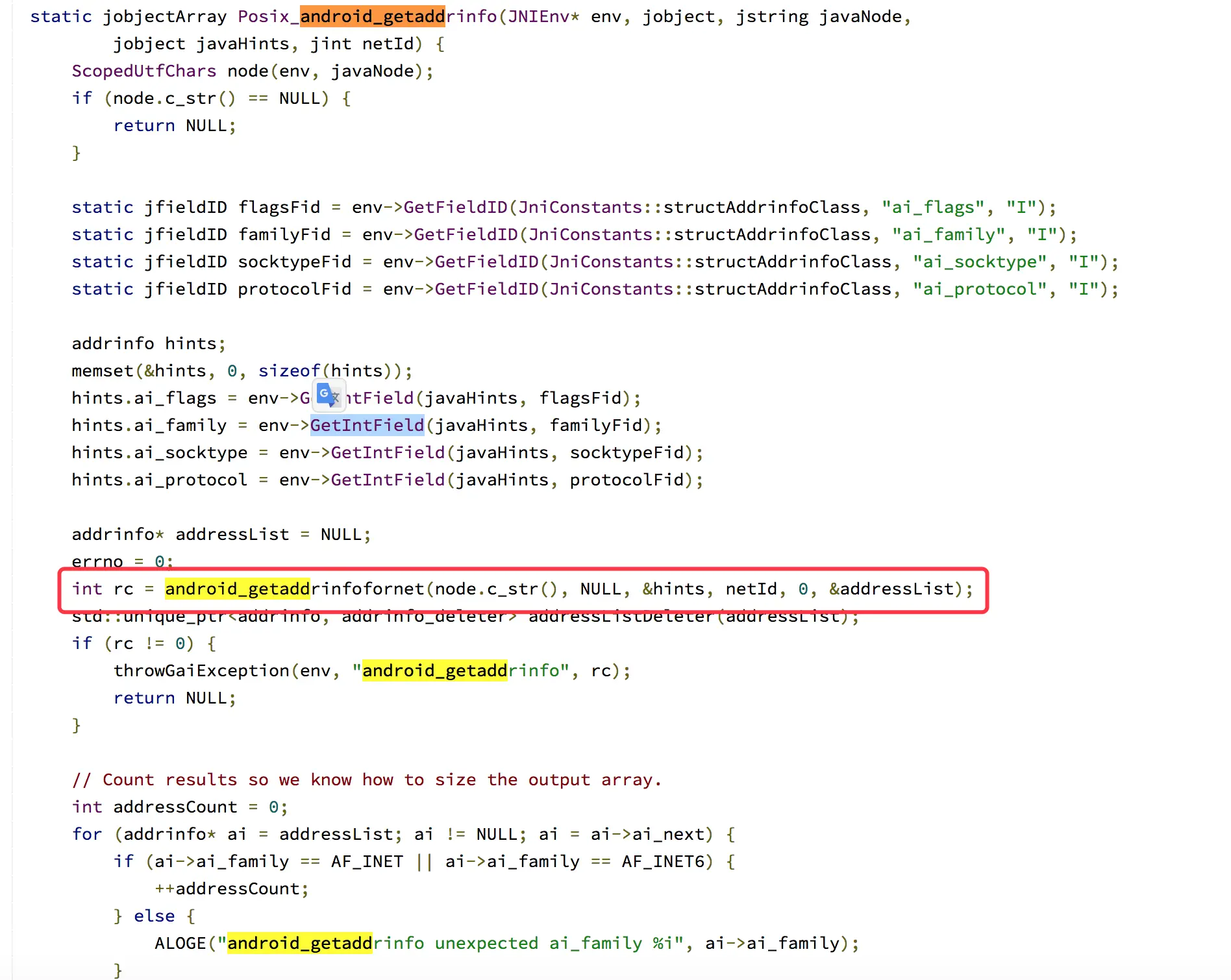 if (method.getName().equals("android_getaddrinfo")