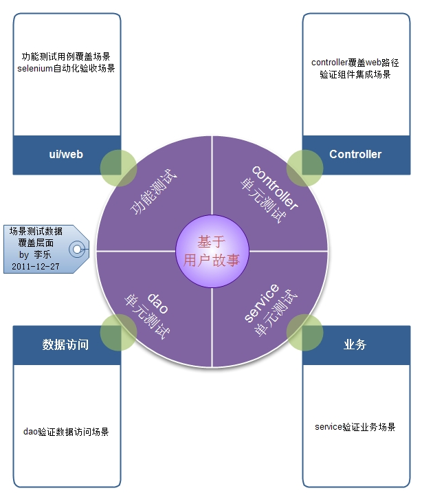 大家可能会问:Scrum模式、用户故事,测试人员怎么利用?为什么想到这个?如果遗漏了测试场景,团队会很不爽,怎么避免呢?结合@Aullyxiao的《软件测试之魂》提到分层测试的想法,想了想,还可以这么整: