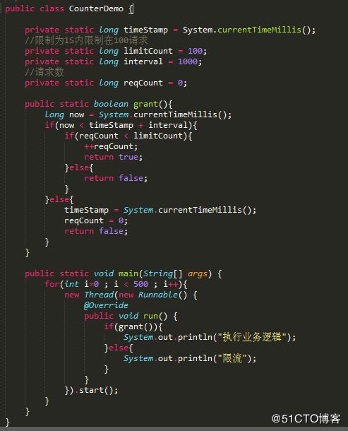 计数器是一种比较简单的限流算法,用途比较广泛,在接口层面,很多地方使用这种方式限流。在一段时间内,进行计数,与阀值进行比较,到了时间临界点,将计数器清0。