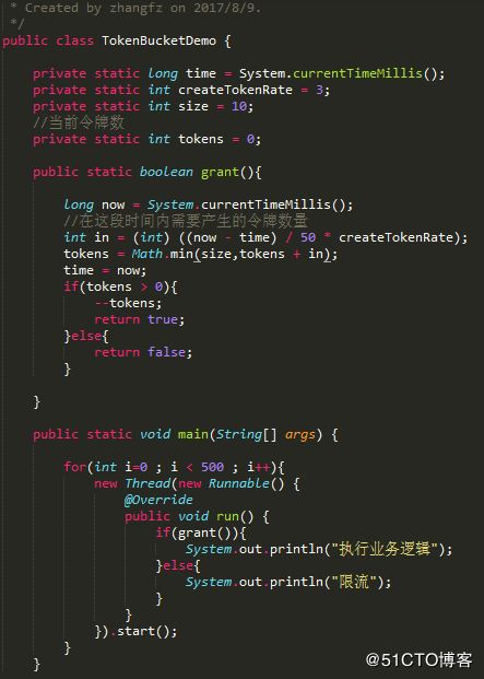 生成令牌的速度是恒定的,而请求去拿令牌是没有速度限制的。这意味,面对瞬时大流量,该算法可以在短时间内请求拿到大量令牌,而且拿令牌的过程并不是消耗很大的事情。(有一点生产令牌,消费令牌的意味)