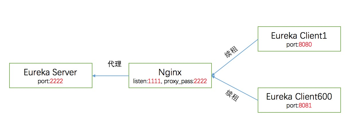 下面为试验简图,两个应用分别跑在8080、8081端口,请求经Nginx代理并转发到Eureka Server。