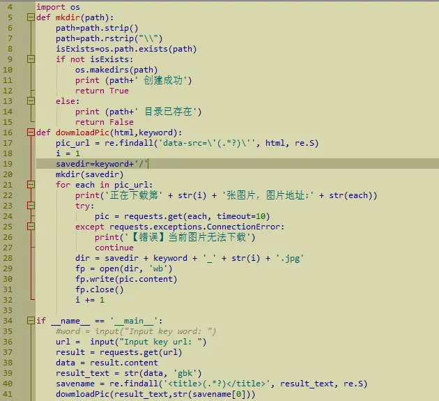 首先导入re、requests、os三个包,用于爬虫,os包用于目录的创建