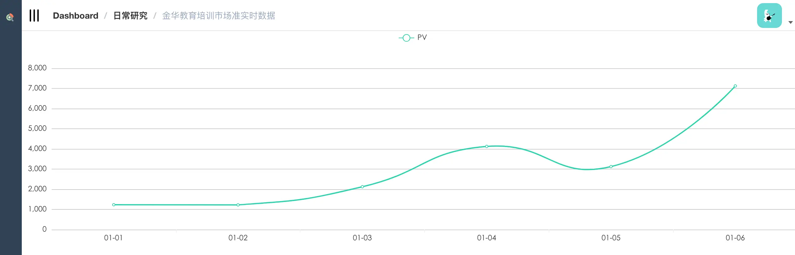 该期目标只是要在DashBoard中加入一个Research内容,自己称为”日常研究“,然后要把一个叫“金华市教育培训(早教)机构的实时分析”的社会研究数据信息以动态图表的形式加到research标签下。为后面自己业余做的一些小研究(社会领域)找个载体。