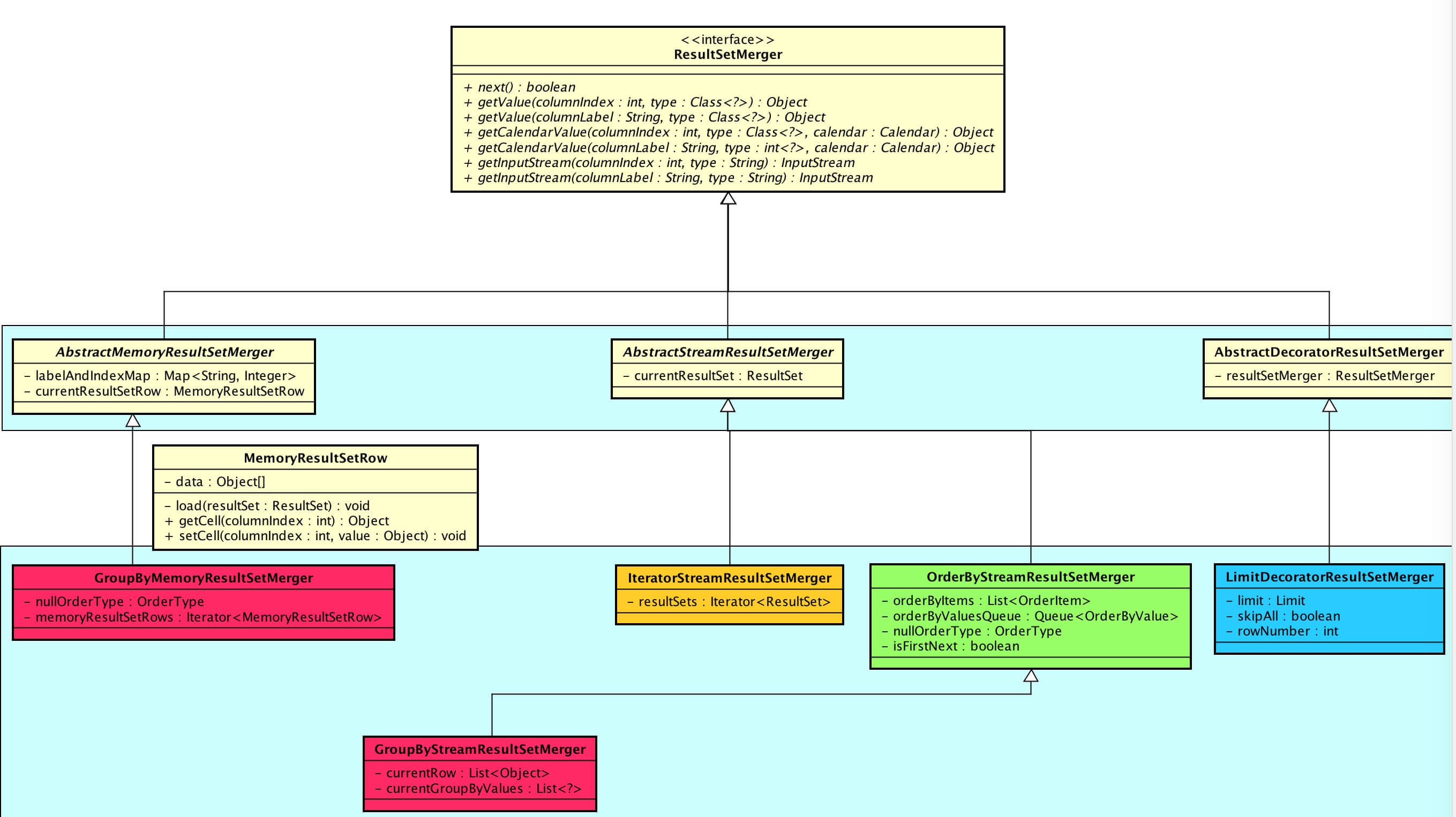 | OrderByStreamResultSetMerger | SELECT * FROM t_order ORDER BY id |