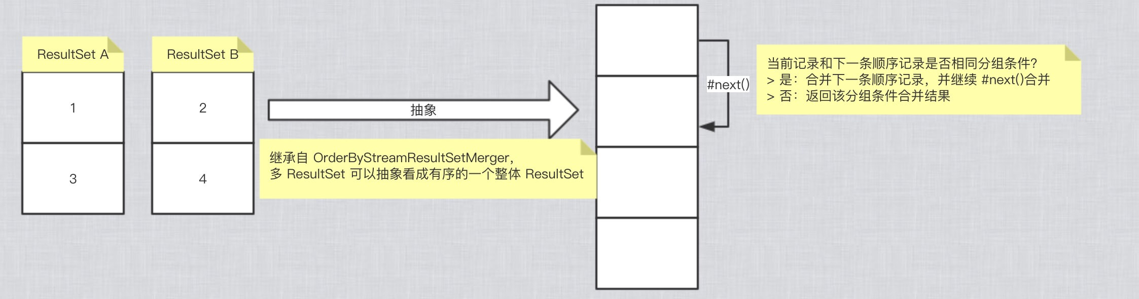 IteratorStreamResultSetMerger,基于 Stream 迭代归并结果集实现。