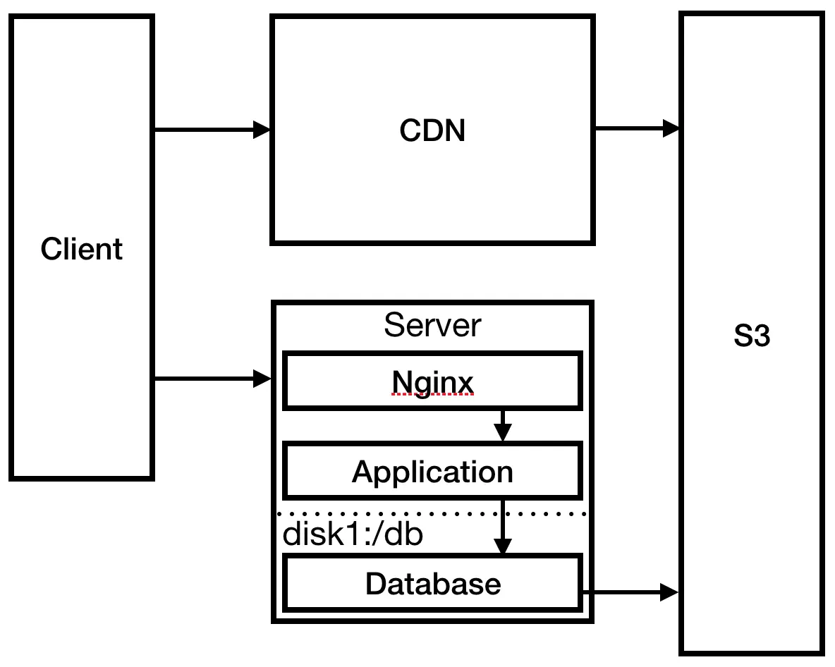 于是你拼命的进行了优化,你在服务器通过 Nginx 设置了跳转你应用程序的反向代理,你将静态文件进行了剥离,上传到了 S3,这是很有效的,你可以通过 CDN 帮助加速你网站在不同地区的访问。
