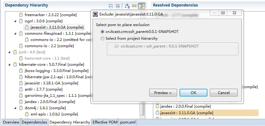 org.apache.struts 依赖 spirng-beans-3.0.5,spring-context 依赖 spring-beans-4.2.4,但是发现 spirng-beans-3.0.5 加入到工程中,而我们希望 spring-beans-4.2.4 加入工程。