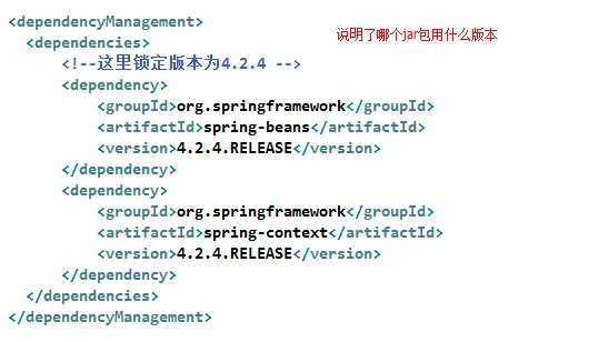 对众多的依赖,有一种方法不用考虑依赖路径、声明优化等因素可以采用直接锁定版本的方法确定依赖构件的版本,版本锁定后则不考虑依赖的声明顺序或依赖的路径,以锁定的版本的为准添加到工程中,此方法在企业开发中常用。