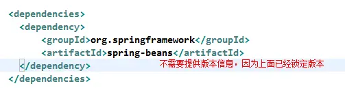 如下的配置是锁定了 spring-beans 和 spring-context 的版本: