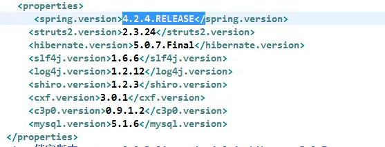 <!-- 锁定版本,struts2-2.3.24、spring4.2.4、hibernate5.0.7 -->