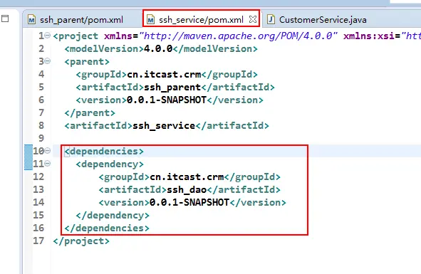 定义 pom.xml:maven 工程首先要识别依赖,web 工程实现 SSH 整合,需要依赖 struts2.3.24、 spring4.2.4、hibernate5.0.7 等,在 pom.xml 添加工程如下依赖。