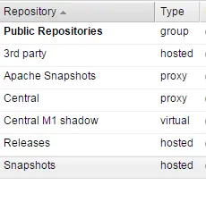 - apache-snapshots:代理仓库,存储 snapshots 构件,代理地址 repository.apache.org/snapshots/