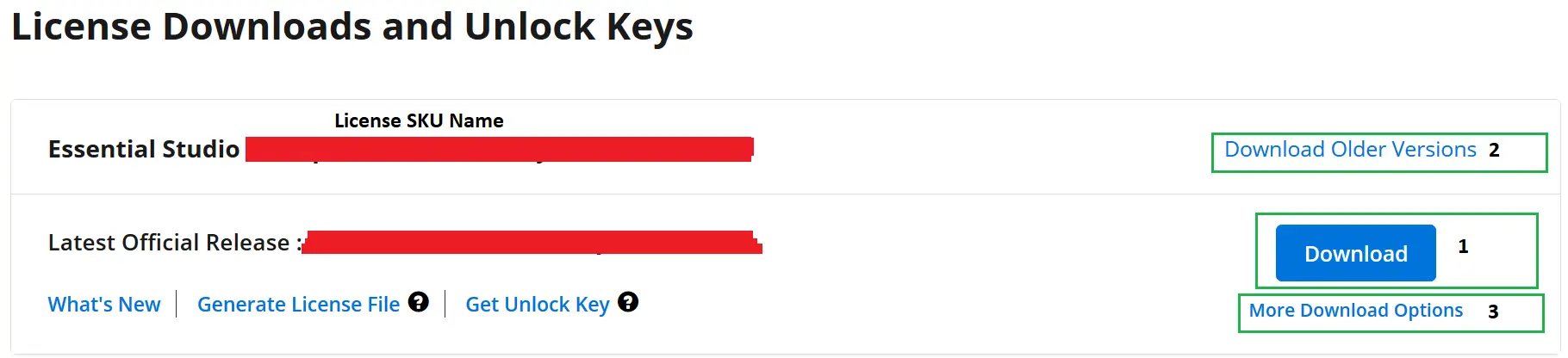 - 您可以在 许可和下载 页面中找到已注册的Syncfusion帐户下的可用许可产品。