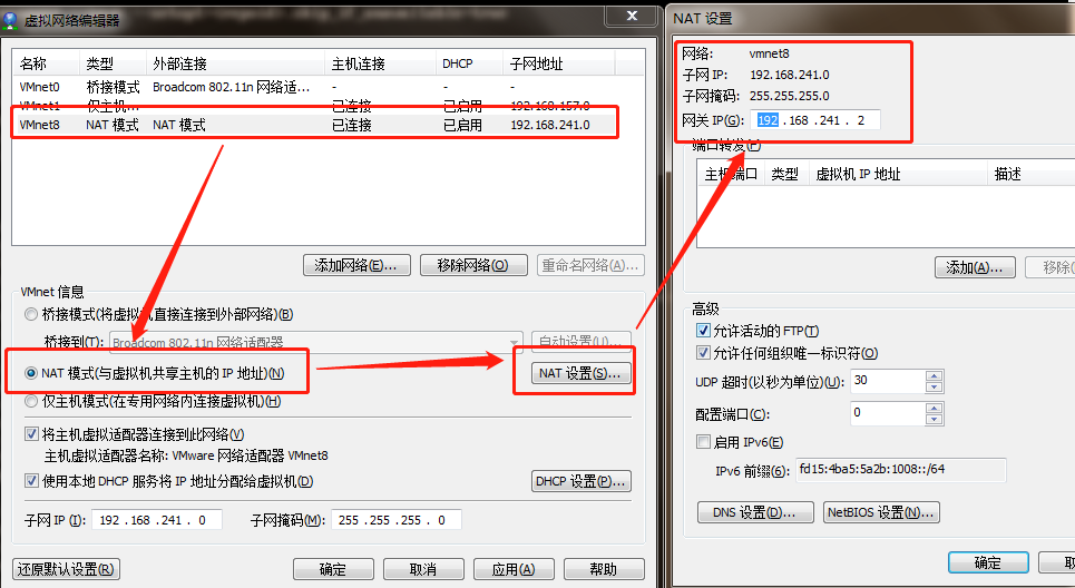 ip:192.168.241.0、 子网掩码:255.255.255.0、 网关:192.168.241.2