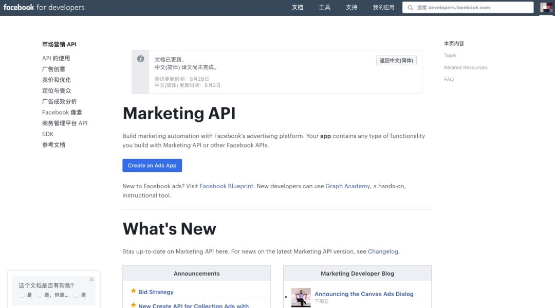 Markting API,是拥有读写广告、读取细分数据、受众主页APP资源管理等功能的面向开发者的接口。接口非常齐全,能够实现Adsmanager上的所有功能(极个别要间接实现),甚至拥有超出Adsmanager的能力,与Adsmanager的一致性维护得特别好,其设计理念从根本上就希望广告主/代理利用Markting API能产生比Adsmanager更大的价值。对接Facebook的TD(Trading Desk)或者FMP(Facebook Markting Partner)均基于Markting API实现自动化智能化营销。但是,Markting API需要有开发者账号,还根据开发者账号等级拥有不同的广告账号、一定时间内调用次数等限制,会直接影响到效率。API token则来源于Facebook账号或者是商业管理平台的系统账号,两个账号的token权限略有不同,具体后文再讲。