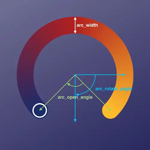 进度条宽度(arc_width)、开口角度(arc_open_angle)、旋转角度(arc_rotate_angle) 的基本含义如上图所示。