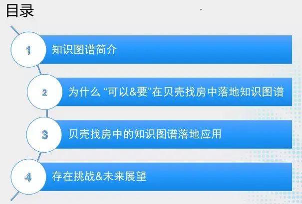 今天分享的内容有四个方面,第一个介绍下知识图谱,第二个讲为什么 “可以&要”在贝壳找房中落地知识图谱。第三个就是贝壳找房中的知识图谱落地应用,最后讲一下存在挑战和未来展望。