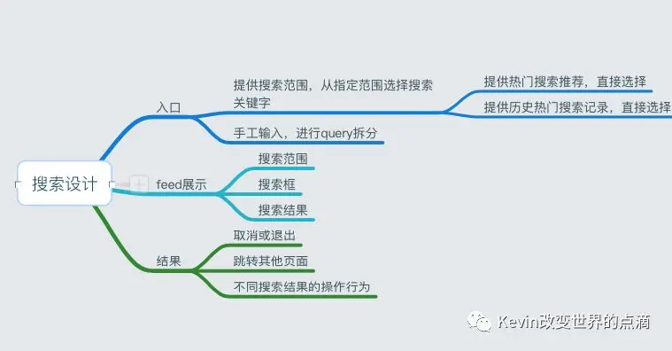 搜索产品设计分为搜索入口、排序、展现形式、搜索范围。其中展现形式与搜索范围归纳为不同的产品形态结果。
