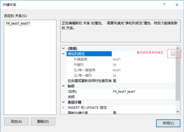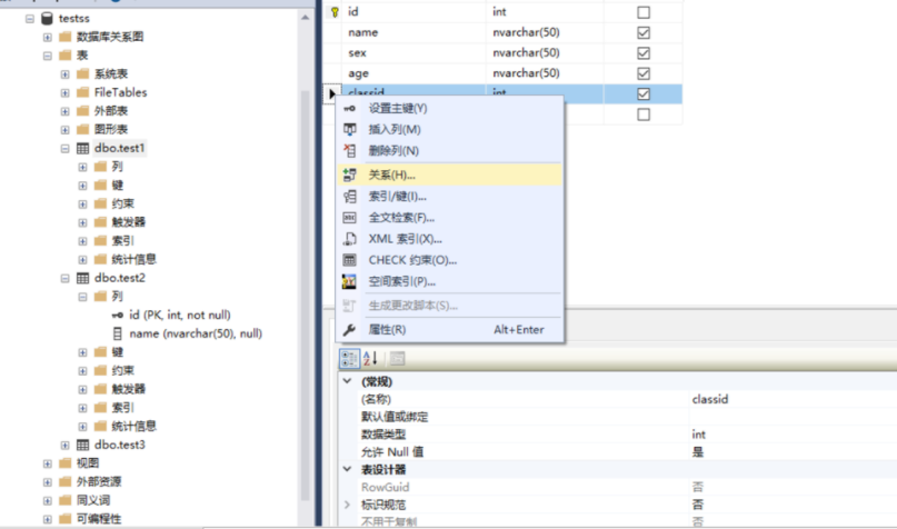 使用SSMS数据库管理工具添加外键约束