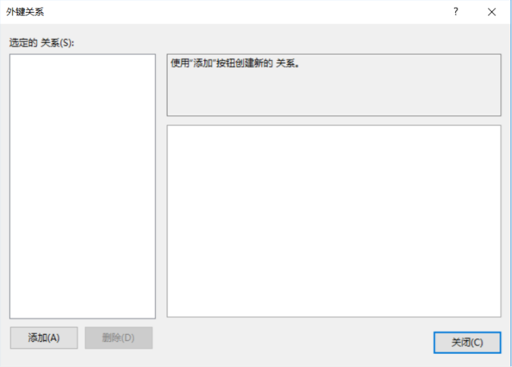 3、在外键关系窗口中-》点击添加。