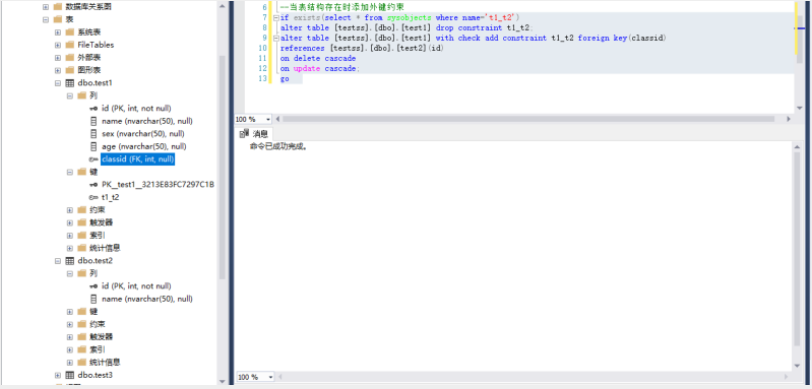 使用T-SQL脚本添加外键约束