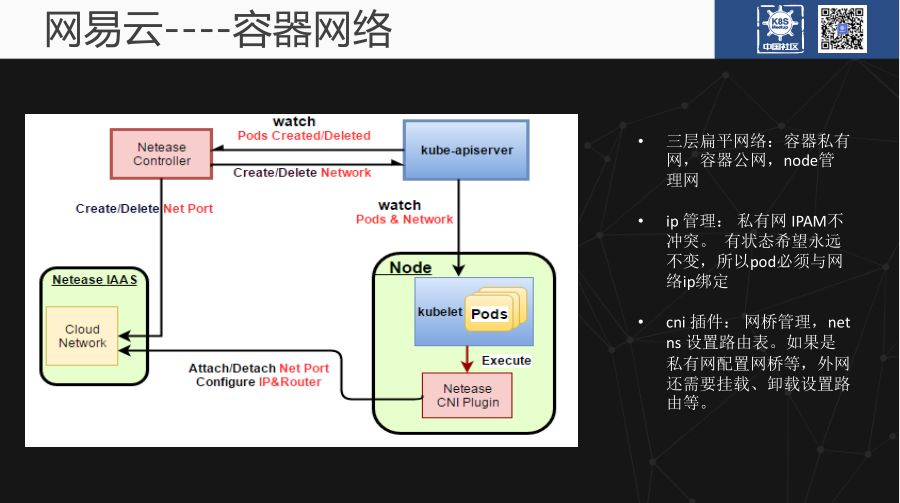 刚才讲的那些,主要是基于 Kubernetes 1.3。为了使容器网络同时支持经典网络和 VPC 网络,所以我们对于 Kubernetes 的定制改造做的比较深。在同时支持两种网络模式的情况下,我们对容器服务进行了面向公有云的全面改造,既要支持多租户隔离,又要对容器服务实施安全加固还要自己做一些动态资源管理。