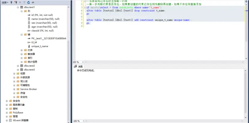 给一列或者多列添加唯一约束时,先判断要添加的约束是否存在,如果存在则先删除再添加,如果不存在则直接添加。